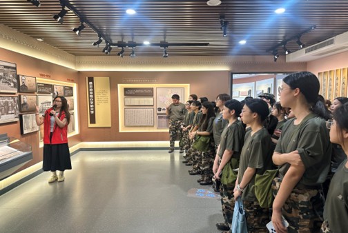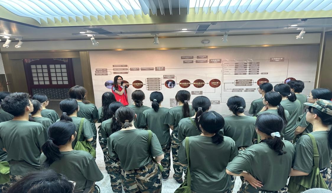 山东大学校史馆位于中心校区文史楼南楼。一进馆内同学们就被眼前金色牌匾上“为国育才”四个大字所震撼,初步了解了山东大学的创办宗旨。在讲解员细致深入的讲述中,从1901年山东大学堂的创办章程,到抗战烽火中的艰难内迁;从新中国成立后的院系调整,到改革开放后的跨越式发展;再到迈进新时代,学校在“双一流”建设中取得的辉煌成就……一部跨越三个世纪、波澜壮阔的奋斗史诗徐徐展开。站在展馆内,同学们不禁与前几天观看的中国人民抗日战争暨世界反法西斯战争胜利80周年纪念日阅兵仪式联系起来,体悟着阅兵式展现的“国家力量”与校史中“教育救国”的梦幻联动。深刻感受着山东大学“为天下储人才,为国家图富强”的办学宗旨和“学无止境,气有浩然”的校训精神。