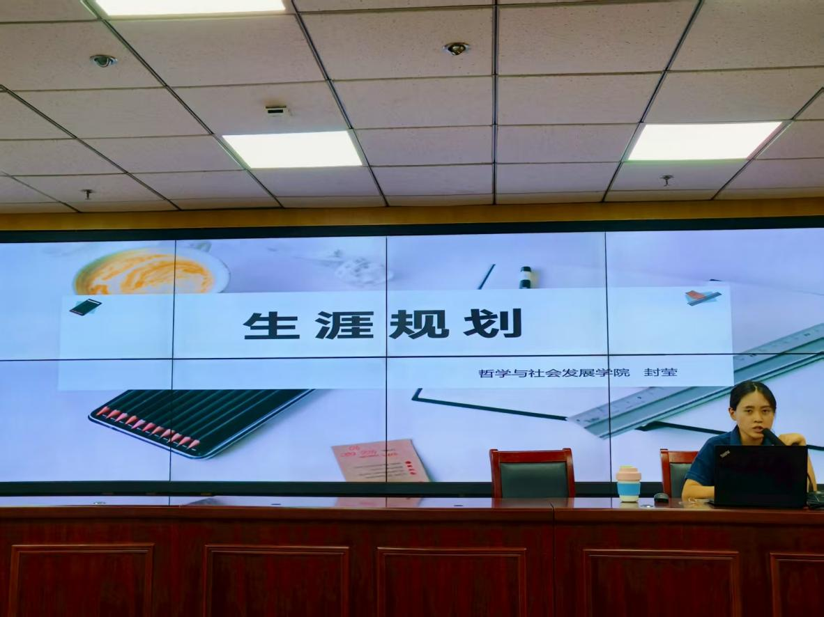 随后,封莹结合大学生成长特点,从安全教育与生涯发展两个方面展开讲解。她首先强调政治安全、人身安全、网络安全等的重要性,提醒同学们在校期间要保持警惕,增强防范意识,做到“知风险、守底线、重落实”。同时,她围绕“特质—因素论”“生涯九宫格”“时间管理四象限”等主题,引导同学们科学规划学习与生活;并结合各专业毕业去向的特点,提醒同学们提前思考发展方向,合理选择导师与学业路径。