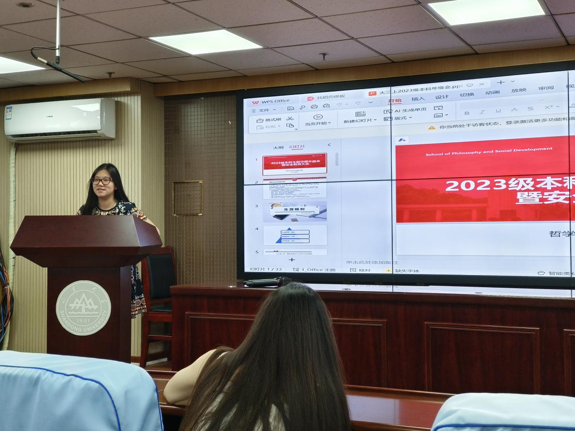 于中心校区知新楼A1521召开2023级本科生新学期年级会暨安全教育大会。学院党委副书记翁祥栋、辅导员封莹担任主讲,2023级全体本科生参会。