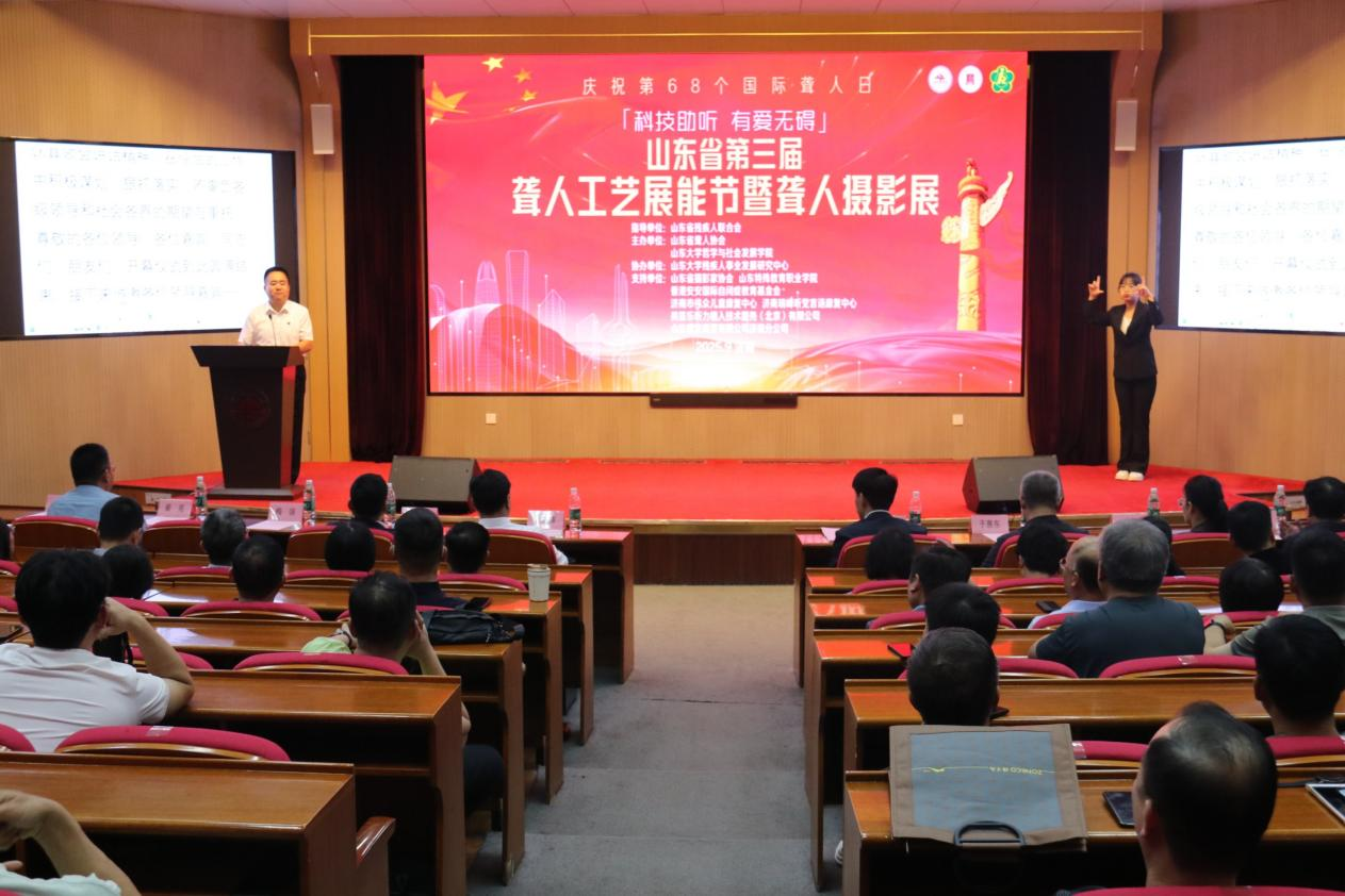山东大学党委副书记张帅,山东省残疾人联合会党组成员、副理事长张文涛,山东省文学艺术界联合会党组成员、副主席于惠东,山东特殊教育职业学院党委书记杨磊等嘉宾出席活动。会议由中国聋协副主席、山东省聋协主席孔军强主持。