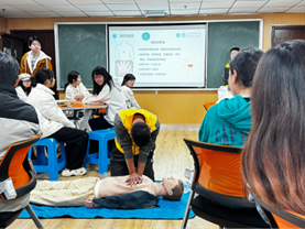 随后,山大二院四叶草志愿服务团队陈长静开展专业授课。陈长静聚焦心肺复苏、海姆立克急救法等核心技能,结合癫痫发作、老年骨质疏松患者急救等场景,通过视频演示、动作拆解等方式讲解操作原理。