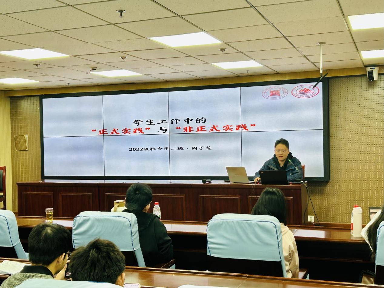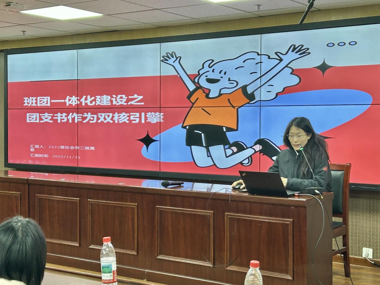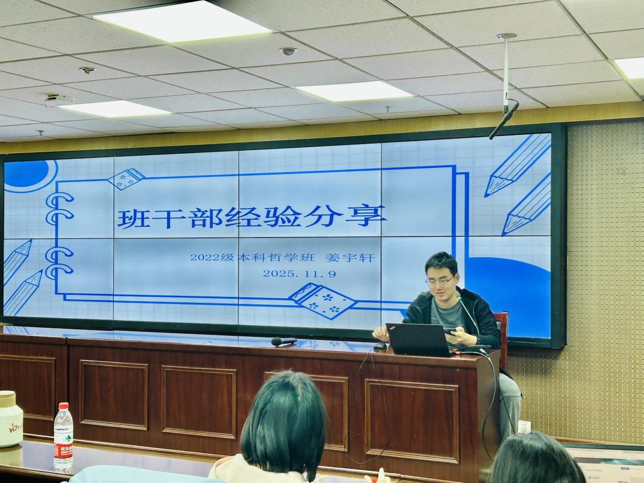 交流会上,22级优秀学生干部代表围绕班委工作重点展开针对性分享:本科生第一党支部书记、社会学二班团支书高歌提出团支书应承担“行政+思想”双驱动角色,强调工作留痕与关键环节落实;本科生第二党支部书记、哲学强基班团支书时千惠聚焦班团一体化建设,分享规范团课组织、落实“三会两制一课”等实操经验;学院学生会负责人、社会学二班班长周子龙以“正式+非正式实践”为框架,拆解学业工作兼顾与实务技能提升路径;哲学班班长姜宇轩从初心立场、职责定位、能力意识三方面,明确班委“信息桥梁、活动组织、班级代表”三重角色,强调“初心+责任”的核心要义。