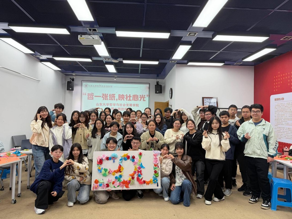 青年志愿者协会在学院团委的指导下,联合“听心小筑”二级心理辅导站、山东大学学生纸艺社团,于知新楼A115教室举办“哲一张纸,映社心光”心理主题团课活动。