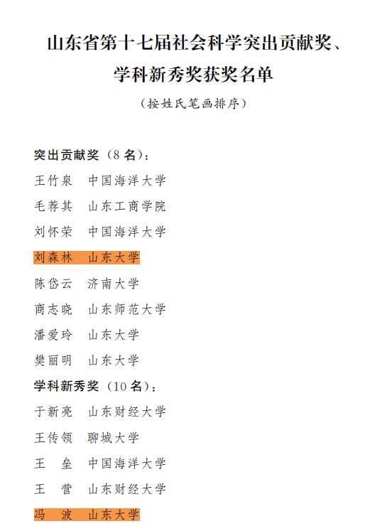 近日,山东省人民政府公布第三十七届社会科学优秀成果奖、第十七届社会科学突出贡献奖及学科新秀奖获奖名单,bet007足球比分