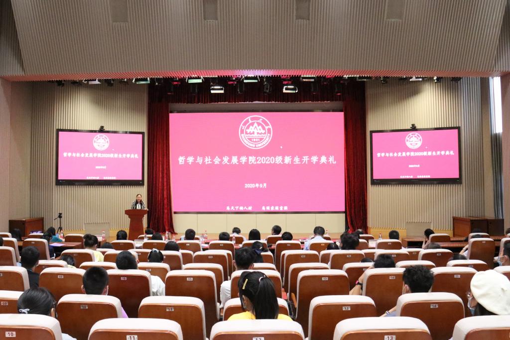 在系主任、教师代表寄语环节,哲学系吴童立副教授、宗教学系陈坚教授、社会学系林聚任教授、社会工作系葛忠明教授、人类学系和文臻老师分别从学科介绍、个人成长、文化解读、视野格局、心态培养、全面发展等多个方面向新生进行了介绍,对同学们表示热烈欢迎并送上美好祝愿。