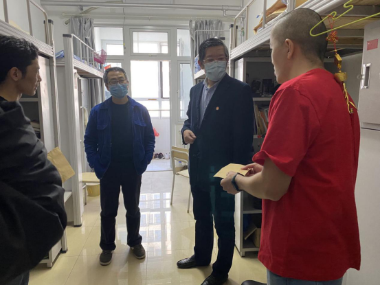 党委书记郑倩、院长刘森林、党委副书记李永卫带领学院学工队伍一行5人,前往学生宿舍慰问学院留校学生,全面了解学生情况,为学生送去慰问物资,表达了学院深切的关怀。