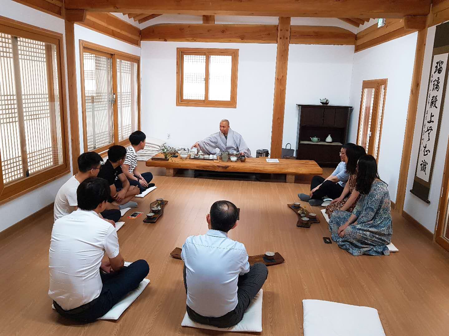 本次会议围绕“东亚佛教的普遍性与特殊性”主题,双方各派出四名论文发表者展开讨论和问答。陈坚教授发表论文《禅宗:回到佛教本身》,认为禅宗不但使佛教中国化,更是使佛教“佛教化”而回到佛教本身;牛建科教授发表论文《简论日本佛教的本土化——以神佛关系为中心》,指出日本佛教本土化中的两个特点,即“异体互认”与“同体互鉴”;李海涛副教授发表论文《普照知讷与< 六祖坛经>》,认为普照知讷的禅学思想中受到诸多慧能及《坛经》思想的影响;马丛丛博士生发表论文《大元国师法旨碑年代补证》,补定大元国师法旨碑立于1341年。东国大学高荣夑教授发表论文《东亚佛教的普遍性和特殊性——以元晓的唯识·起信·华严·禅法的一心观为中心》,认为从元晓哪里就开启了韩国佛教所具有的东亚佛教的普遍性和特殊性;徐旺模(正道)教授发表论文《永明延寿与普照知讷的唯心净土与他方净土》,认为唯心净土与他方净土的区别更多是与个人的根器及社会环境相关;韩佳兰博士生发表论文《韩国禅的普遍性与特殊性——以普照知讷和真觉慧谌为中心》,认为知讷和慧谌所倡导的看话禅体现了韩国禅的普遍性与特殊性;郑瑛暻(资宪)博士生发表论文《华严经视角下忿怒的原因与控制法》,认为四无量心能更好地对治人们的忿怒。会议期间,代表团一行实地考察了韩国首尔千年古寺奉恩寺,并了解到北极宝殿作为韩国本土信仰融入佛教寺院的实际情况。结合禅茶体验,奉恩寺法师也解答了学生对于为何在寺院内举行演唱会这类现代娱乐形式的疑惑。