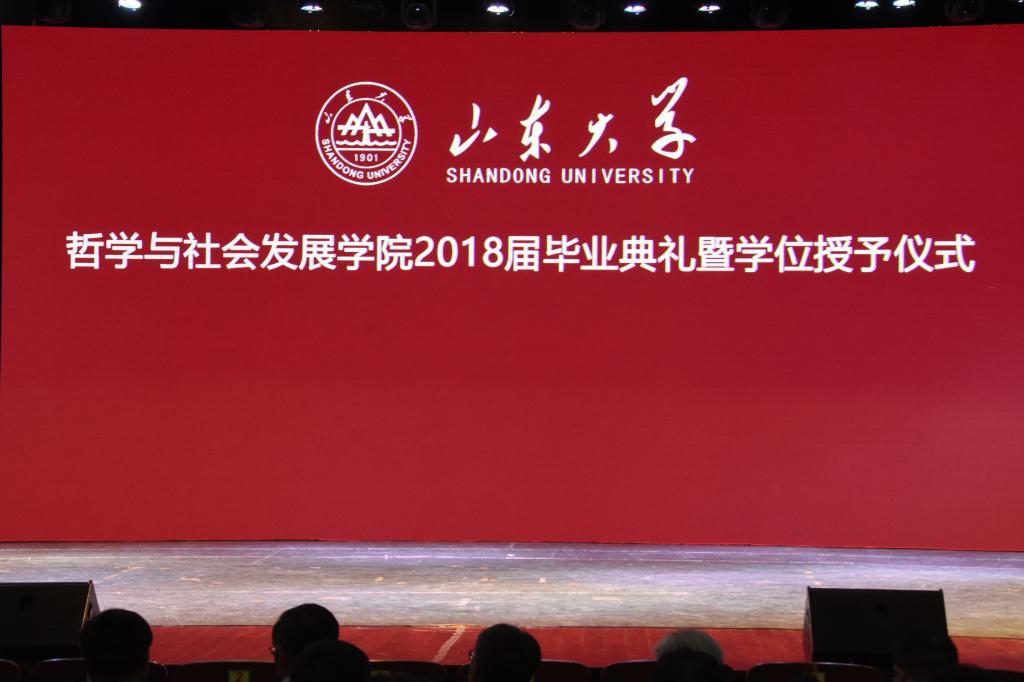 副院长、院学位评定委员会副主席陈坚宣读了山东大学学位授予决定。随后,毕业生身穿学位服、头戴学位帽,依次登台,刘森林教授逐一为毕业生拨正流苏、颁发学位证书,并合影留念。仪式在全场师生共同唱响的《山东大学校歌》中结束。