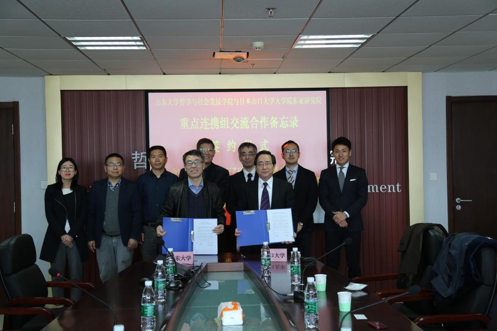 3月25日上午,日本山口大学友好交流40周年代表团社科人文组到访我院,代表团成员在校长特别助理、研究生院东亚研究院院长葛崎伟教授的率领下,与我院刘森林院长、郑倩书记、王华平副院长,以及部分教师举行了会谈,并签署了就科研及教学进行全面合作交流的备忘录。这是我院历史上与国外大学签署的第二个、与日本的大学研究机构签署的第一个全面交流合作协议。