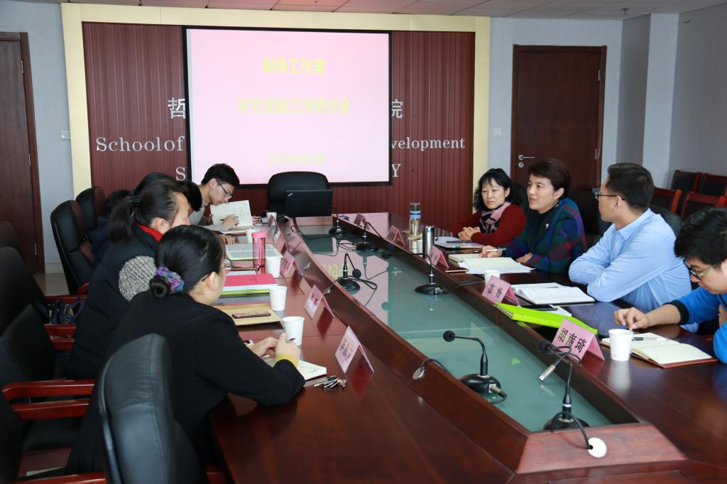4月12日,山东大学首批处级辅导员工作室“阚铮工作室”学生党建工作研讨会在知新楼A1618举行。工作室主持人阚铮及全体工作室成员参加研讨交流。
