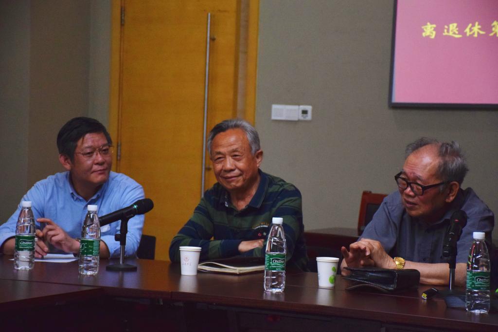 交流会中,张平教授以“伟大的党、光荣的党、正确的党”为主题,引入自己大学时期、投身三线建设时期、任教期间的切身经历,向在座同学们说明党领导人民建立强大工作体制和建设机制的不易,呈现了自己逐渐认识党、认可党、拥护党的心路历程;张平教授还以反腐和打黑斗争为例,说明党是伟大、光荣和正确的。杨俊启教授以自身投入社会主义教育、社会主义建设的经历为例,向同学们讲述了自己一步步坚定理想信念的心路历程,并就当前工作提出两点期望:一是期望能够保持老同志们为学院学科建设建议引策的机制;二是期望能够完善老一代党员与青年同志的沟通联络机制。