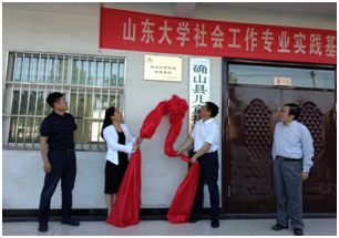 副院长陈坚教授共同为“山东大学社会工作专业实践基地”揭牌。县民政局局长胡中全、社会工作系主任高鉴国教授,县福利中心工作人员和社会工作专业硕士研究生一起参加了挂牌仪式。