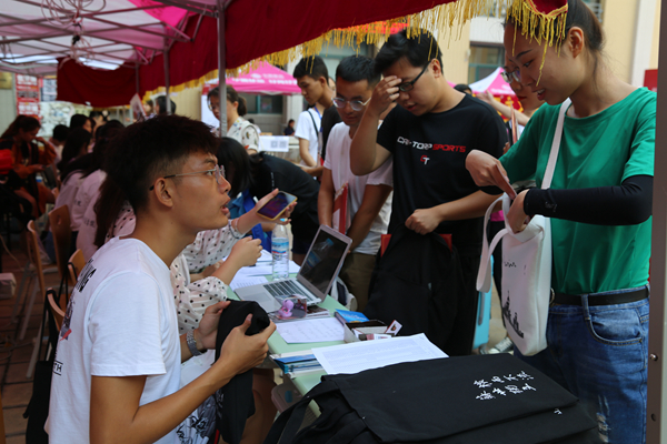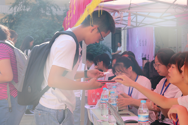 院学生会、研会、bet007足球比分的干事与志愿者同学们在团委的指导下进行了迎新工作。学院迎新地点设在山东大学中心校区17号楼前,志愿者们一早就来到现场进行布置,期待着新生的到来。现场志愿者们为新生发放相关材料,办理入住手续,引领新生有条不紊地完成各项程序,并发放纪念品。新生现场报到包含新生注册与合影留念两个环节。院学生会和研会的同学们负责学生注册环节,包括信息采集、信息登记、录取通知书及相关文件审核、宣传品发放等。bet007足球比分负责新生的合影留念,为新生留存在bet007足球比分