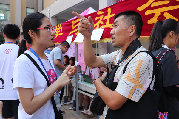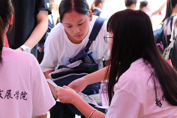 的“首秀”。现场还设有家长休息区,为家长提供饮水、咨询解答等服务。此外,志愿者同学们还为新生提供了接站、帮搬行李等服务。