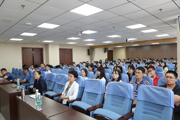 2019级研究生新生见面会在知新楼A座1521报告厅举行。学院副院长陈坚教授、院党委副书记阚铮、部分研究生工作分管老师及全体研究生新生参会,党委副书记李永卫主持。