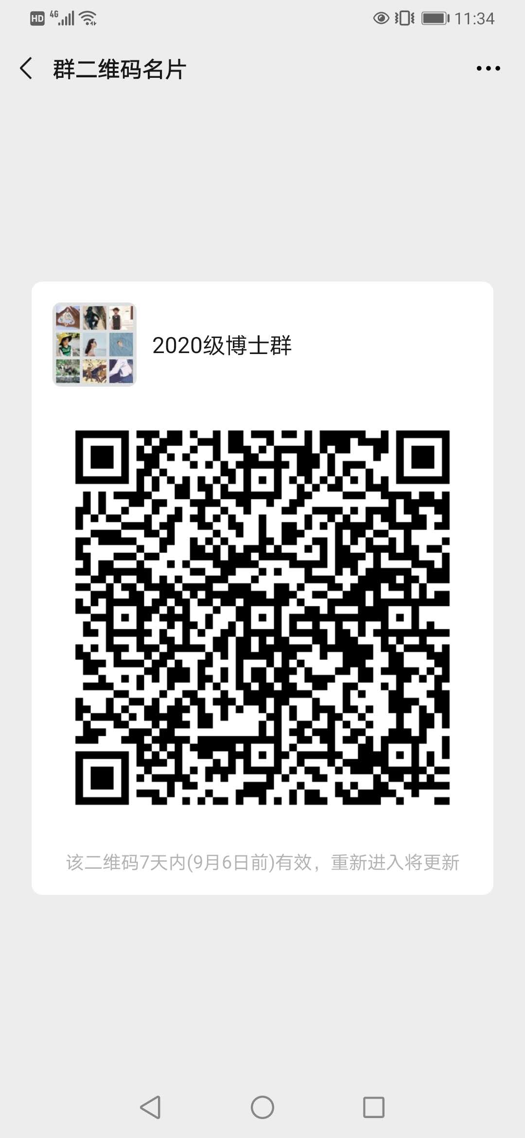 由于今年受疫情影响,开学报到有一些事项需要提前与新生沟通,请2020级博士研究生扫描以下二维码加入新生群,申请进群时请备注专业+姓名。