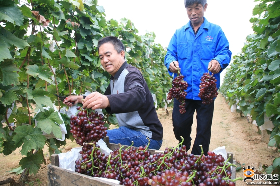 事情并没有到此结束。之后,孔军强还牵线为该村联系了葡萄专家,陪着专家到该村进行考察调研,为葡萄发展献计献策。孔军强也结合自己的果树知识,建议该村不要单独大规模发展“红宝石”这个晚熟品种,应该发展一些适合供应中秋、国庆市场,并且适合采摘的葡萄新品种。后来,夏黑、金手指等适合节日采摘的品种陆续试种成功,农民的钱袋子鼓起来了,日子越过越滋润。