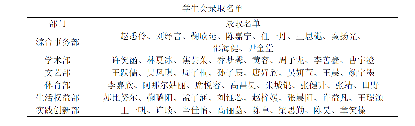 第二十三届学生会、第一届青年志愿者协会、第三届媒体与创意中心录取名单公示如下(姓名排序无先后):