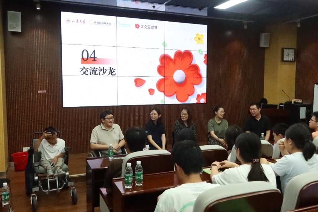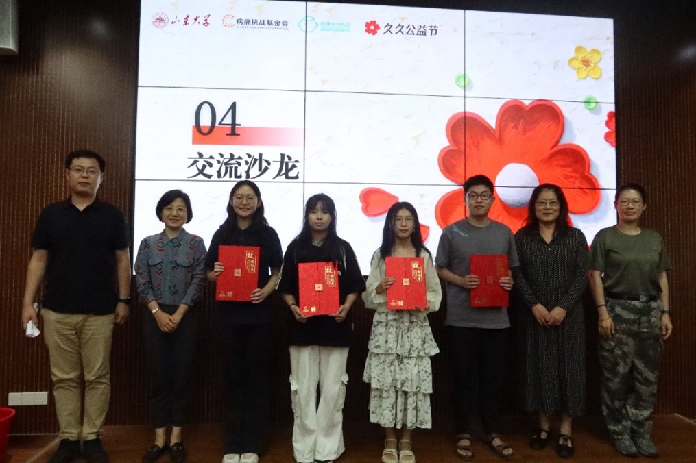 党委副书记翁祥栋、山东大学团委创新创业指导中心主任南东周、北京病痛挑战公益基金会副秘书长孙荣甲,以及长期关注、支持罕见病社会工作实践的专业老师张洪英和黄春蕾,同关注和支持罕见病群体的同学们一起参与了本次活动。