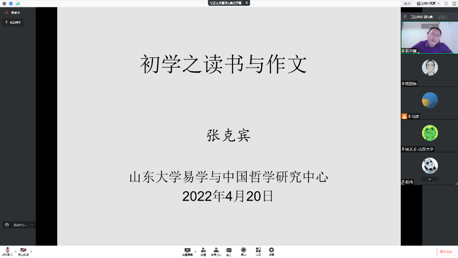 团委以线上的形式开展了第二期“万卷”系列沙龙。本次沙龙邀请到山东大学易学与中国古代哲学研究中心教授,博士生导师张克宾老师进行中国哲学论文写作指导。山东大学教授,博士生导师,bet007足球比分