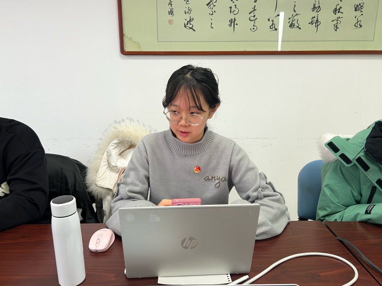 班长杨景文就班级建班以来的各项工作进行汇报,并带领班级成员书写年度总结与新年展望。她从班级情况、班级文化建设、班级活动开展、班级未来展望四个方面进行汇报,梳理班级建设与发展中存在的问题,并提出方案在会上讨论研究。她表示22宗教学班级全体自建班以来认真学习、踏实努力,认真对待班级活动与个人生活,未来班级工作开展离不开每一个班委与班级成员的支持与参与。