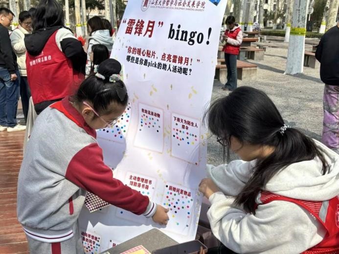 积极响应学校雷锋月倡议,于3月9日在中心校区文渊林精心组织开展“你的暖心贴片,点亮雷锋月”主题志愿服务活动,于春日校园中掀起学习雷锋热潮。
