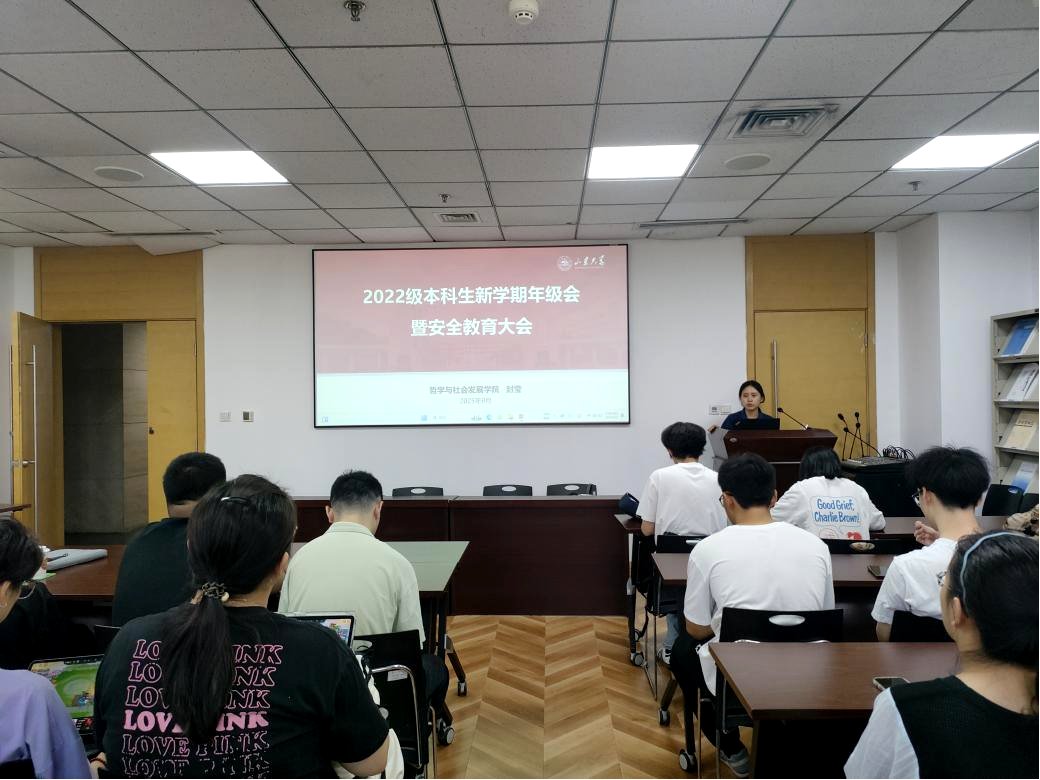 为精准护航2022级本科生顺利毕业,做好新学期各项工作安排,2025年9月3日下午,bet007足球比分 于中心校区知新楼A319召开2022级本科生新学期年级会暨“嘤鸣”系列之高质量就业报告会,辅导员封莹主讲,2022级全体本科生参加。
