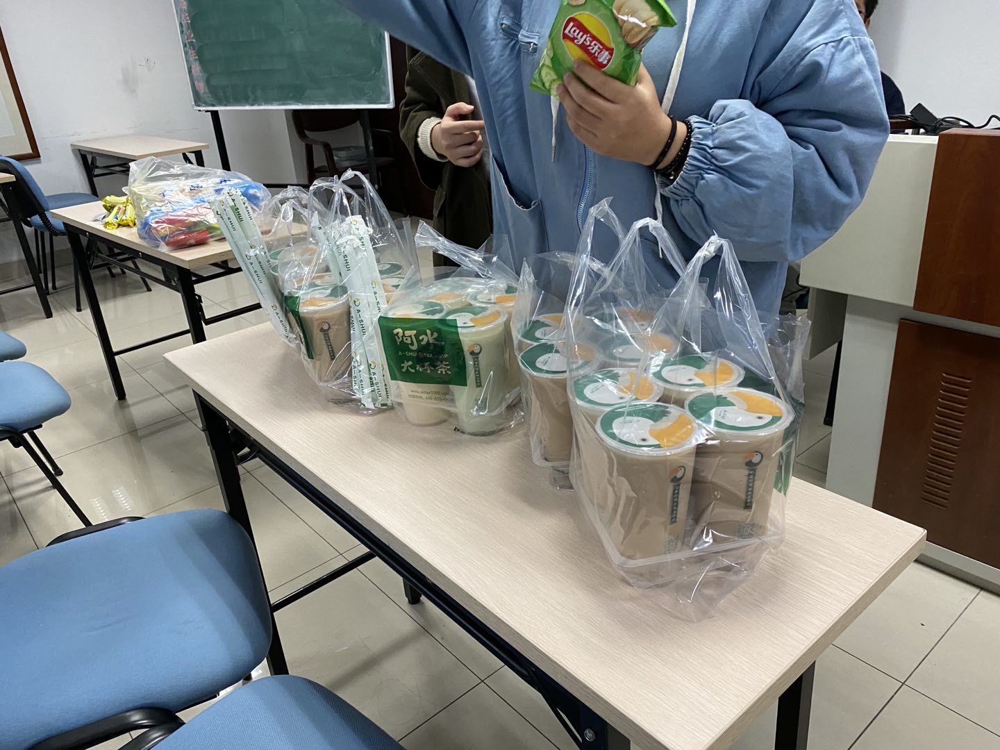 为了加强同学们之间的课后联系,增进同学友谊,提高同学们的美学鉴赏能力,19级社会学二班举办了观影活动。在观影开始之前,班委分工购买了零食和奶茶,并分发给全班同学。班长李林静先主持了一个简短的班会,主要提醒大家做好疫情防控、进出学校内外场所佩戴口罩的必要性和重要性等问题,然后组织大家集体学习青年大学习最新一期。