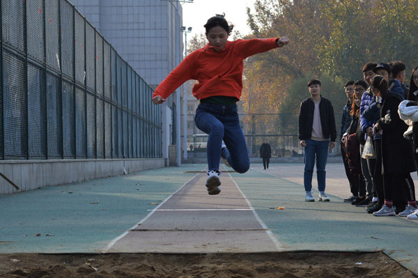 运动会设有男子女子100米、200米、400米、1500米、铅球、垒球、跳远、4*100米接力等多项竞技活动,以及拔河、竞速协作、企鹅接力、泰坦尼克号、袋鼠行动等多项趣味活动。短跑比赛中呐喊声,加油声连绵不断,声音鼓舞着运动员们奋勇向前。跳远运动员们助跑、踏跳、腾空、踏入沙坑,激起一片飞尘;拔河比赛将运动会带向高潮,加油声、呐喊声响成一片;趣味项目中队员们伴随着一二一二的口号齐心向前。运动员们在挥洒汗水中收获友谊与热情,在竞技与拼搏中体味青春活力,在对比与共融中磨练和丰富自我。同时,负责组织运动会的学生会成员也坚守在自己的岗位上,协助检录,通知运动员比赛,进场。裁判员们严肃公正的监督比赛运行。传媒社的同学奔波在赛场上捕捉精彩瞬间,记录感人时刻。大家的共同努力促进了运动会的圆满举行。最终预科一班、预科二班和2017级哲学班分别获得团体第一、二、三名的好成绩。马雁思和曹晓军分别为他们颁奖并合影留念