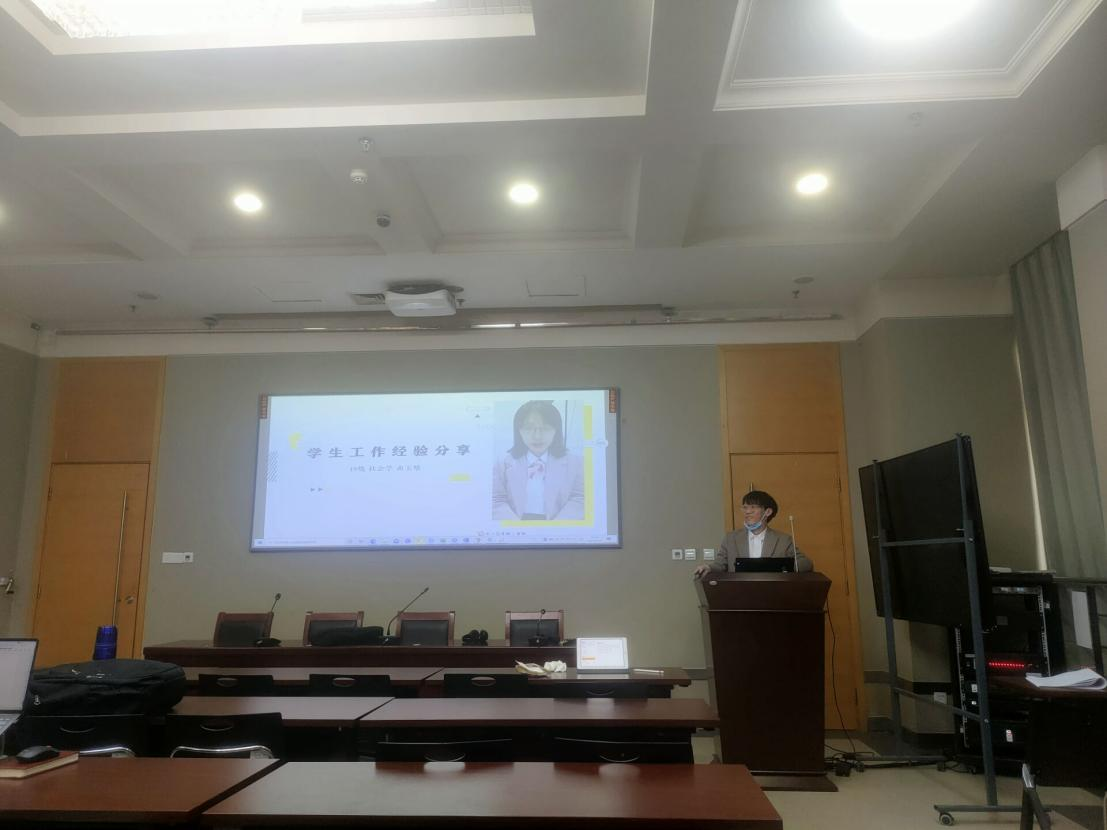 3月25日为系列活动第二场,聚焦学生工作与全面发展。曲玉晴学姐通过线上视频的方式分享了做好学生工作的心得。第一是必备的品质和能力,树立责任意识,学会时间管理,提高工作效率;第二是与人交流的艺术,谦逊的态度与得体的言行是待人接物的基本准则;第三是工作压力的调节,在正式群体中建立非正式群体的亲密关系,并结合社会安全阀理论指出适度宣泄情绪的重要性。