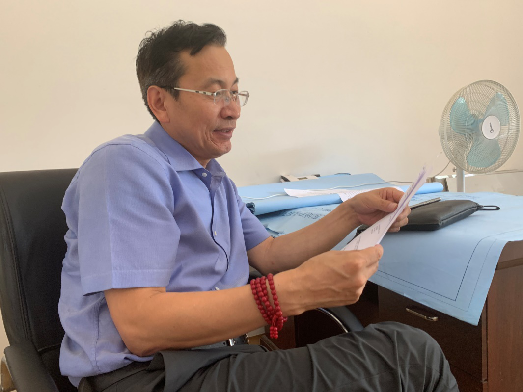 随后,高经理带领调研队员参观了项目经理部,并发放调查问卷,同时委托他们将电子版问卷发送给自己分管的员工。每位经理的办公桌上都堆放着厚厚的设计图纸,他们耐心地讲解着丰州大厦的项目规划、楼盘设计和已售出楼盘的用途。我们得知该项目是3年前审批动工的,以商业用途为主,最大的一笔订单是一个投资人包下了整个顶楼加天台,预备开发影院。由于地产行业从审批通过到最终落成需要经历长达5年的周期,所以疫情只是延缓了工期,减少了新订单,但既有项目的稳步推进还是可以较好支持企业的持续运转。张经理表示,内部员工和外来工人的工资基本都与疫情前持平,虽然企业有一定程度上的资金紧缩,但得益于疫情防控措施的及时、有效。企业在3月就有序复工复产,较快地回归了正轨。