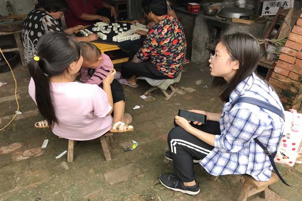 老一辈家长多为监督孩子上学,而新一代的年轻家长,则倾向于使用科技启发教育。队员们来到一户农家,遇到了一位怀抱小孩的年轻妈妈。“我这个小孩两岁啦,平时我就用用手机下载些儿童识字、学歌软件给孩子看看,等他大些了再让他上村里幼儿园去。”当我们问到关于孩子未来期望的时候,大姐笑着对我们说:“自然是希望他读书读的越多越好啦,像你们大学生一样有出息!”随后她朝着孩子说“宝宝是想做官还是想做农民呀?将来你可要好好学习!”可见,在村民的眼中,学习还是一条可以改变人生的路。
