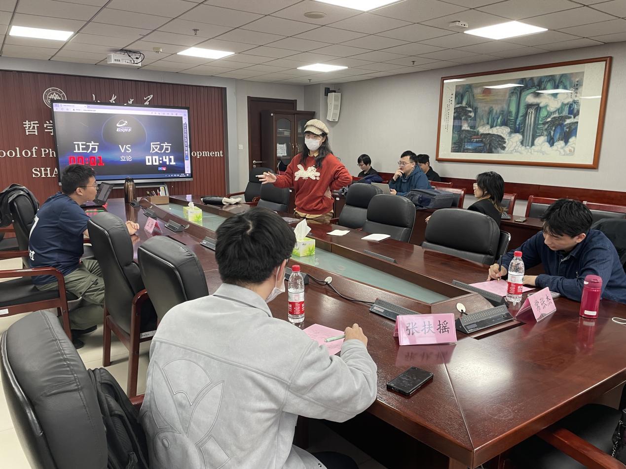 研究生会在知新楼A1618教室成功举办研究生辩论邀请赛。大赛邀请到学院研究生辩论队领队张扶摇与本科生辩论队领队常张杰担任评委,由研究生会主席团成员朱凤霞主持,学院多名研究生参与。