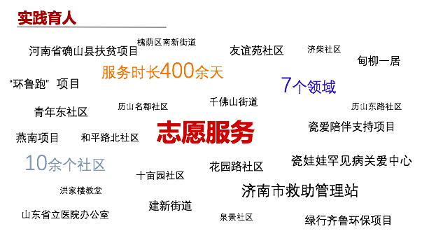 实践育人方面,研会注重打造独特的实践服务文化。今年分别赴济南市10余个社区和项目点开展实践服务活动,累计服务时长超过400天。青春,因志愿服务而更加精彩。