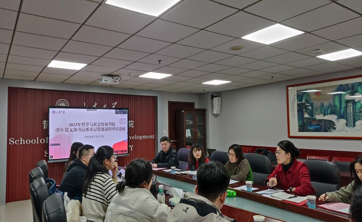 深入学习贯彻习近平新代中国特色社会主思想和党的二十大精神,全面检验党建工作量,一步压紧压实党支部书记履行全面从治党主体任和抓基党建工作职责,哲学与社会展学院党委于1月17日在中心校区知新楼A1618组织召开2023年度学生党支部书记职评议。学院党委副书记马燕、翁祥到会指学院书记班梦姣、学院党书孙辅导员汶鑫以及学院学生党支部书记和部分党同志参加会