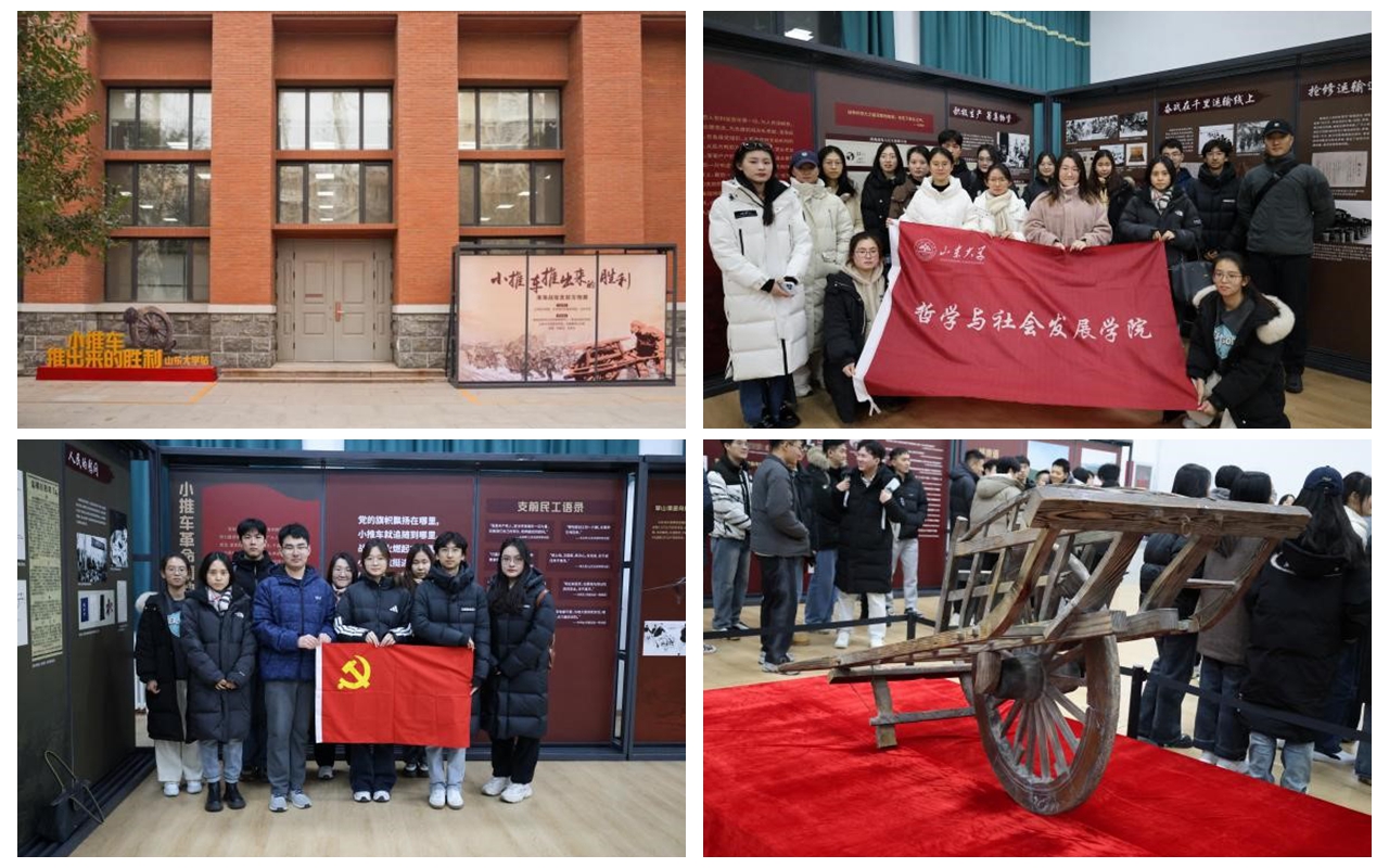 展览设“人民战争的不朽丰碑”“人民战争的深厚伟力”“小推车革命精神永放光芒”三个部分,通过十余件支前文物和百余幅珍贵历史照片,全方位展示了淮海战役的全过程,带领同学们重回革命年代,回顾人民群众支援淮海战役的光辉历史。承载着历史与苦难的文物,人民在风雪中不屈不挠的身影,共同诉说着触动人心的支前线故事。