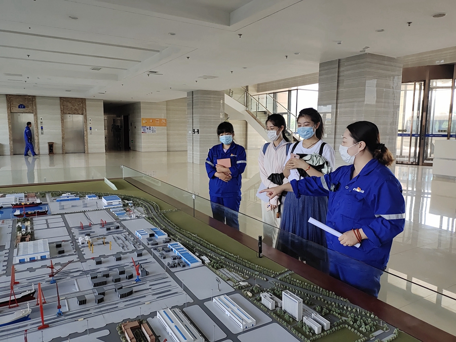 在此时间段里,我们采访了青岛市海洋发展局等政府单位,中国-上海合作组织地方经贸合作示范区等特色园区,山东大学海洋研究院等科研机构,海西湾船舶与海洋工程产业基地等产业集聚区,青岛博益特生物股份有限公司等龙头企业,通过“实地参观学习+深入座谈交流”的方式聆听来自各界的“蓝色声音”。这些和我的专业并不搭边,原本是我的知识盲区;但是在调研的过程中,我渐渐完善了自己的知识体系。